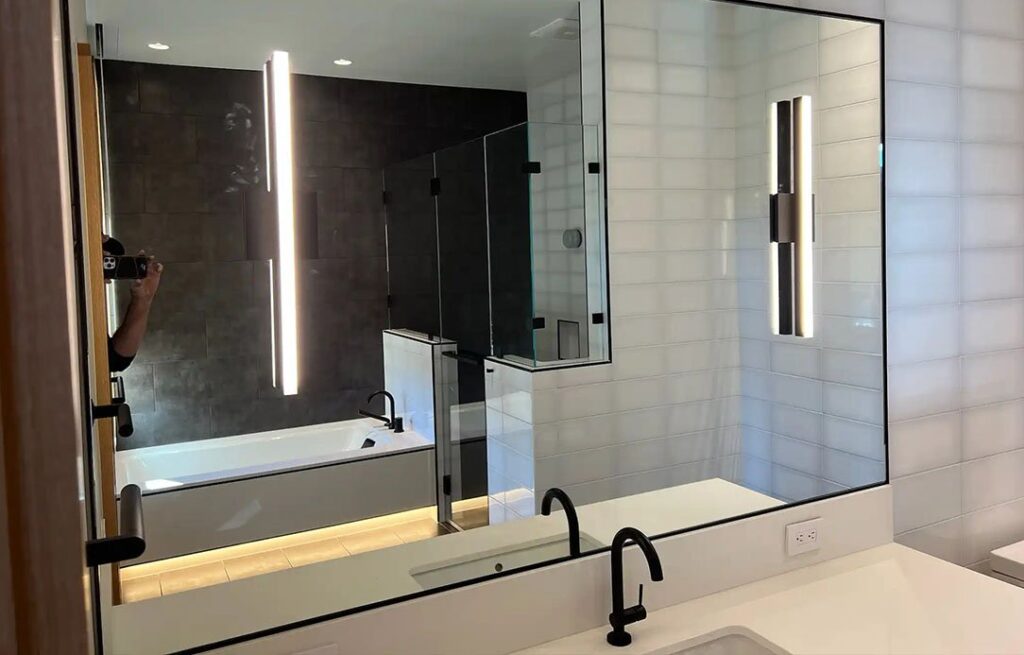Our mirror services include new installations, replacements, and upgrades for vanity mirrors, gym mirrors, full-wall mirrors, and custom applications. Options include polished or beveled edges, safety backing, and distortion-minimized glass.